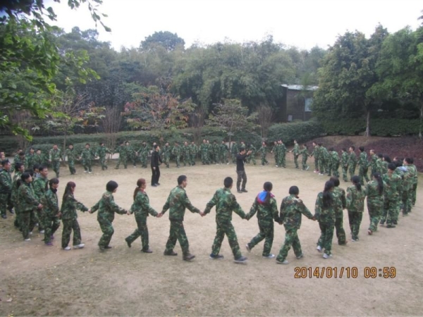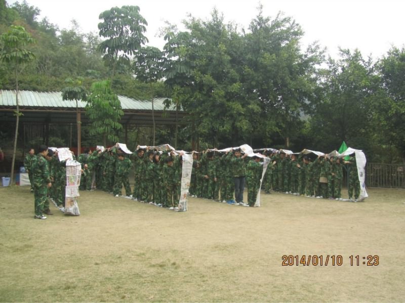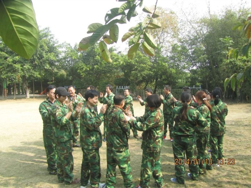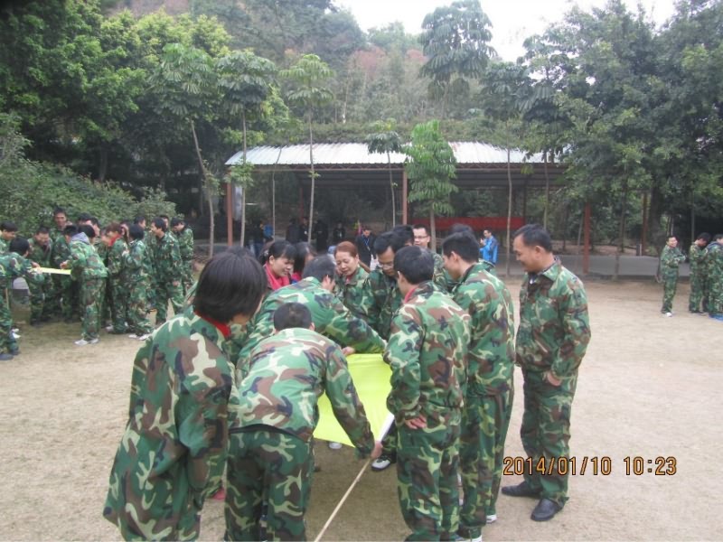 大部隊統一換上迷彩訓練服,精神抖擻,由拓展基地的教官示范下,進行團隊建立、團隊展示,讓隊員從工作過渡到活動狀態,為接下來的活動做鋪墊,進行分隊,選隊長,起隊名,隊歌,口號促進團隊內部的溝通與合作。在教官的示范帶領下進行了破冰訓練、無敵風火輪、挑戰360、激情節拍等拓展活動……讓人印象深刻的無敵風火輪,要求每隊分給一定數量的報紙,制作成大圓圈,站在里面向前走,最先到目的的為勝。一張張報紙,一個個的協作,充分證明了:只有合作,才能成功!每一個項目,在“嚴峻的形勢”下,大家都極力想辦法,通過團隊協作光榮完成任務。