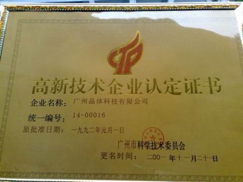 廣州晶體科技有限公司歷年獲得的榮譽圖片3