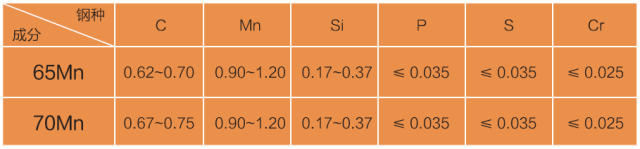 化學成分(%):C(0.85~1.20);Si(0.4~1.5);Mn(0.6~1.2);S,P≤0.05。