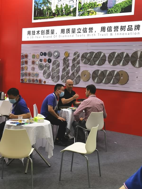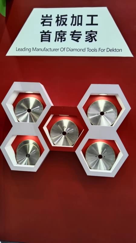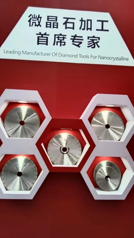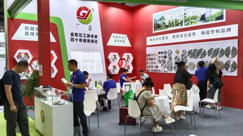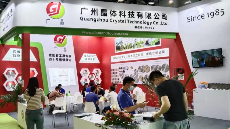 本屆展會中,廣晶公司攜帶眾多專業金剛石工具系列,巖板專用系列、微晶石專用系列、陶瓷專用系列、石材專用系列、玻璃專用系列等金剛石工具參展。展會現場,廣晶工具三大招牌產品包括:CNC磨頭系列、巖板鋸片系列和納米微晶石鋸片系列受到新老客戶追捧和圍觀。